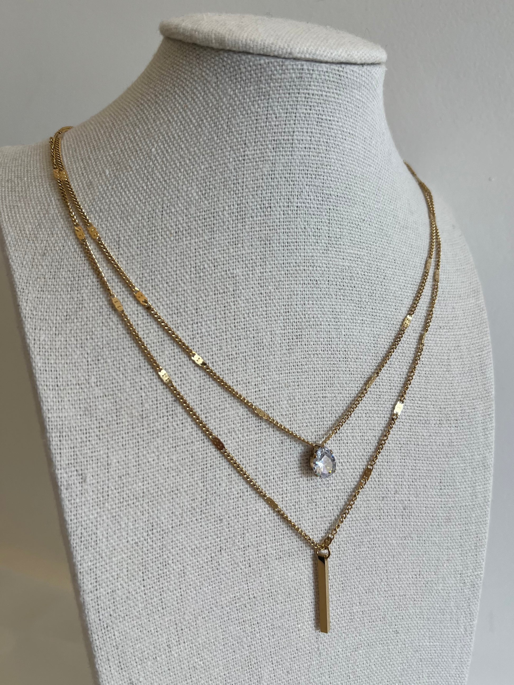 - Collier double rangs avec goutte oxyde de zirconium et barre dorée