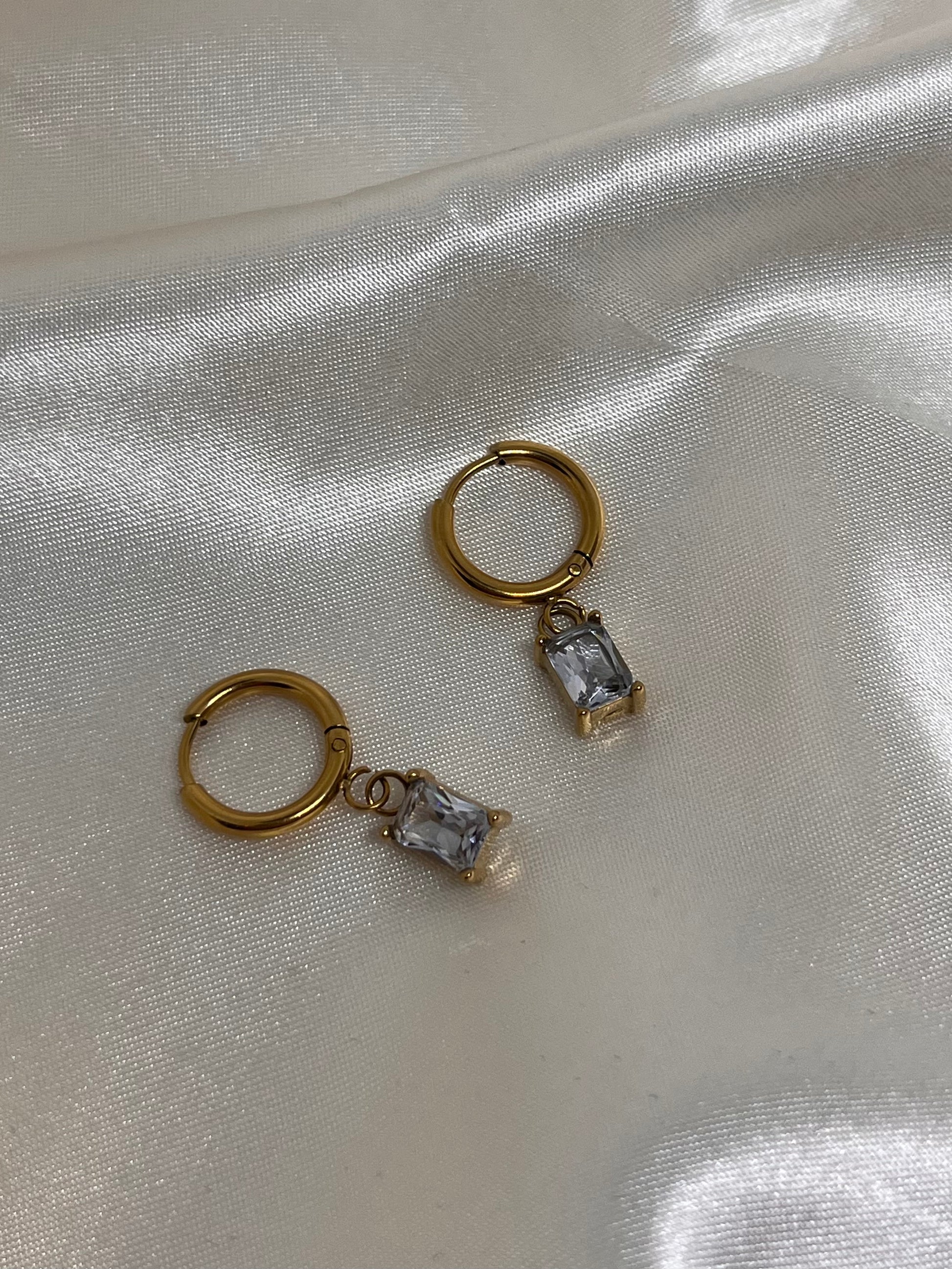 Boucles d’oreilles créoles avec oxyde de zirconium rectangulaire